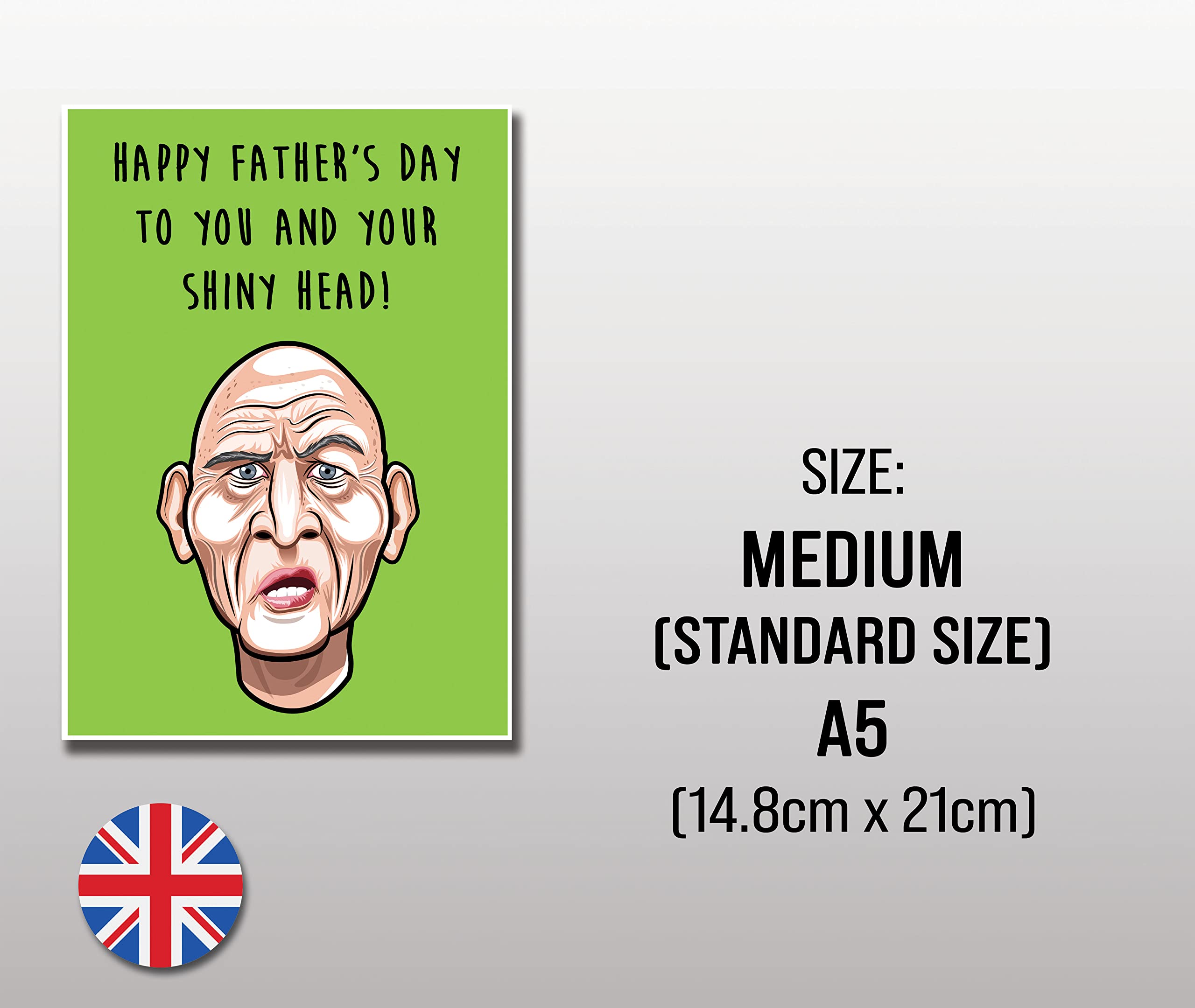 The perfect greeting card for your Dad this Father’s Day! Featuring your bald dad and his shiny head. The card is printed onto 350gsm thick card stock. The card includes a brown ribbed envelope to allow you to forward the card to your loved one. The card is wrapped inside plastic and then placed inside a hard backed envelope for added protection. All our cards are posted via royal mail second class post. Please note the card is blank inside to allow you to write your own message inside. The cards man is a local seller based in Driffield, East Yorkshire. We are a small independent business and pride ourselves on offering the best customer service. We offer a no quibble money back guarantee if you are not happy with our cards.