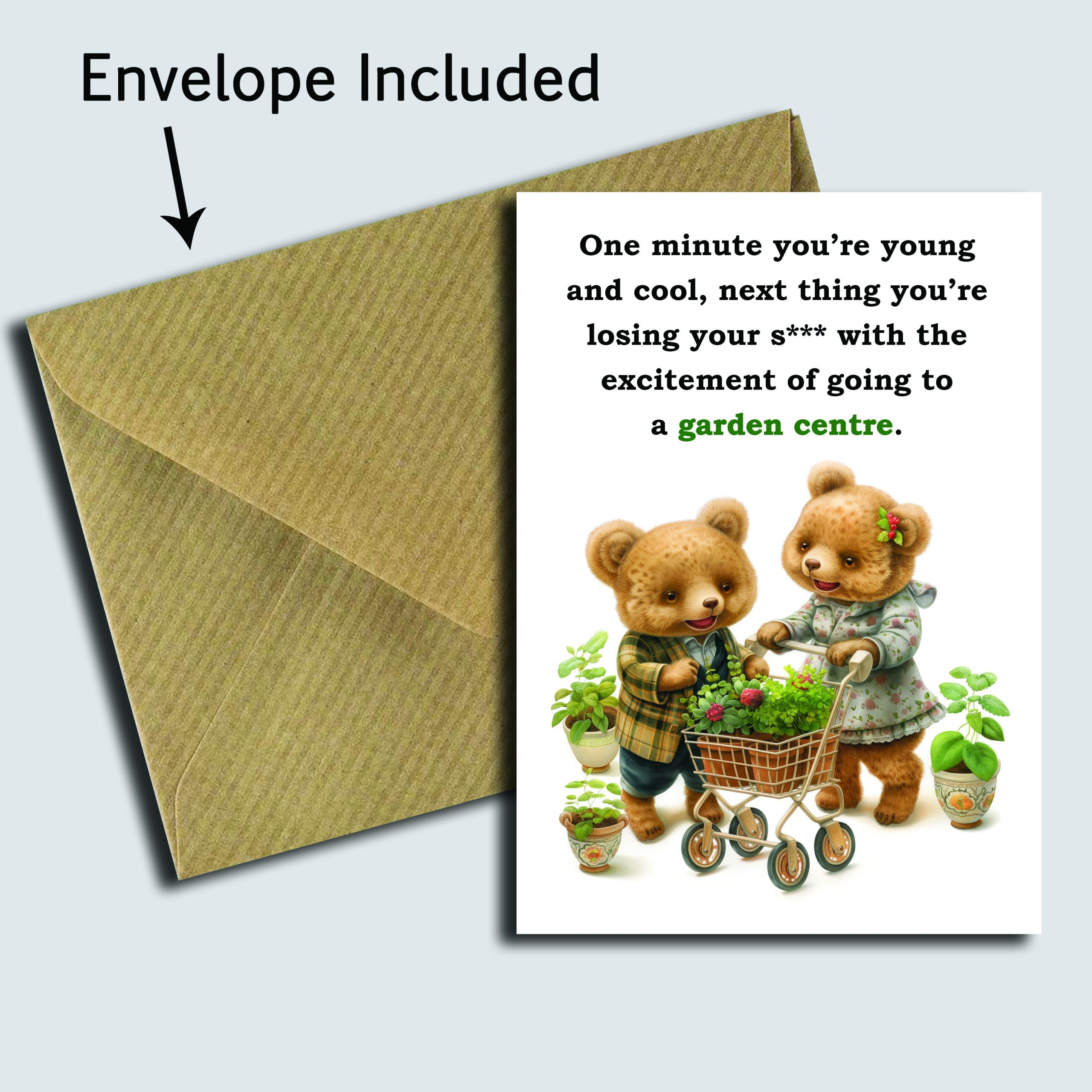 Looking for a delightful way to express your love and affection? Presenting our Funny Garden Centre Card featuring an irresistibly cute bear couple! Whether it’s for your son, daughter, mum, dad, brother, sister, boyfriend, girlfriend, wife, husband, friend or partner this charming card is sure to bring a smile to their face. Measuring 21cm by 29.7cm, this high-quality card provides ample space for your heartfelt message. Each purchase includes a free craft envelope, making it convenient to send your warm wishes. Celebrate birthdays, anniversaries, or simply show appreciation with this adorable bear-themed card. Add a touch of whimsy and joy to any occasion with our Funny Garden Centre Card!